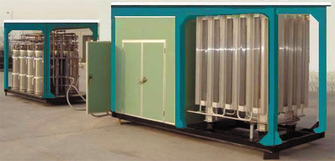 瓶組站內(nèi)設置使用和備用二組氣瓶,周轉氣瓶一組,且數(shù)量相同。當使用一側的LNG氣瓶的液位下降到規(guī)定的液面時,應及進切換到備用瓶組一側,切換下來的氣瓶應及時充裝備用。